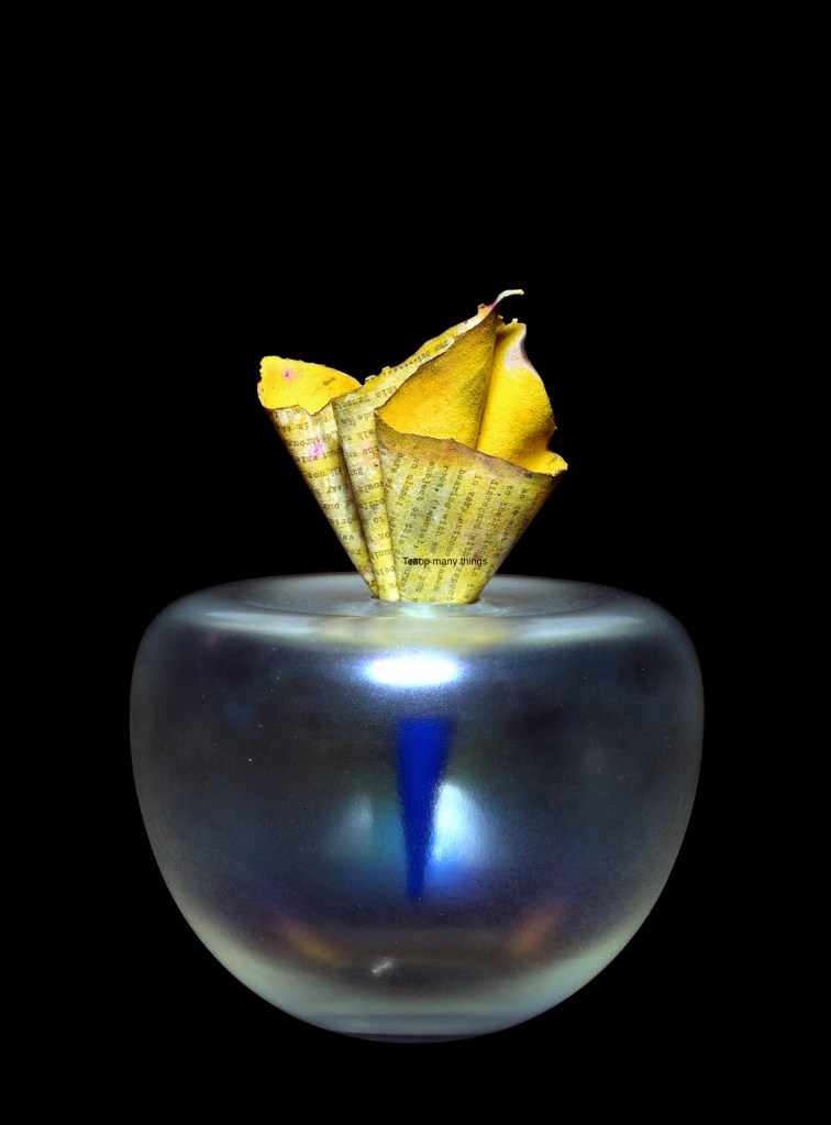 MATERIALS glass, tin chloride fuming, partially burnt canvas with typing, string, paint, resin
