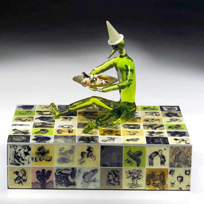 MATERIALS glass, Muranese glass animals, glass tiles, glass enamel, wood, colored liquid, gold leaf
